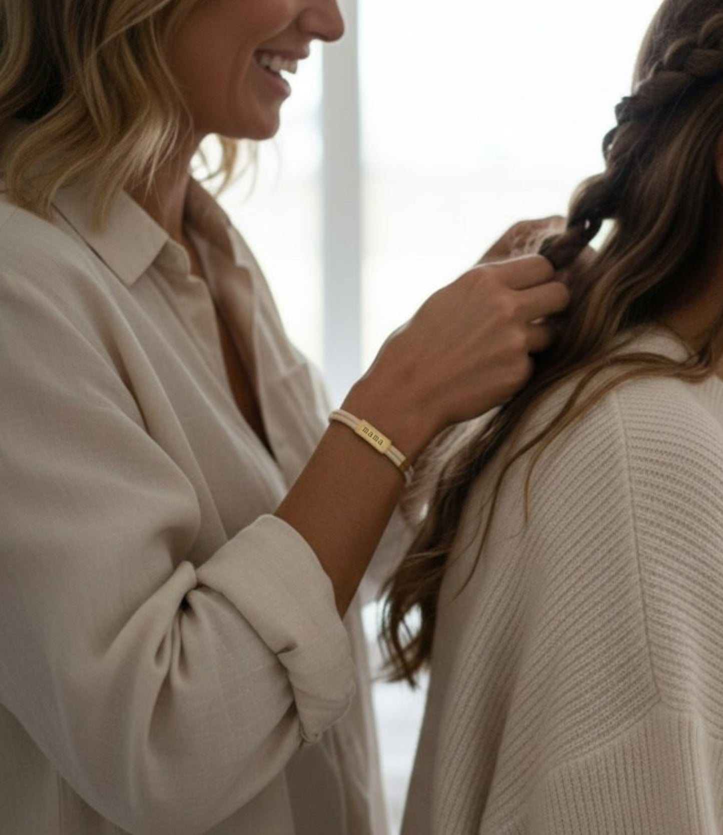 Sentiment Cord Bracelet-Mama, Ivory