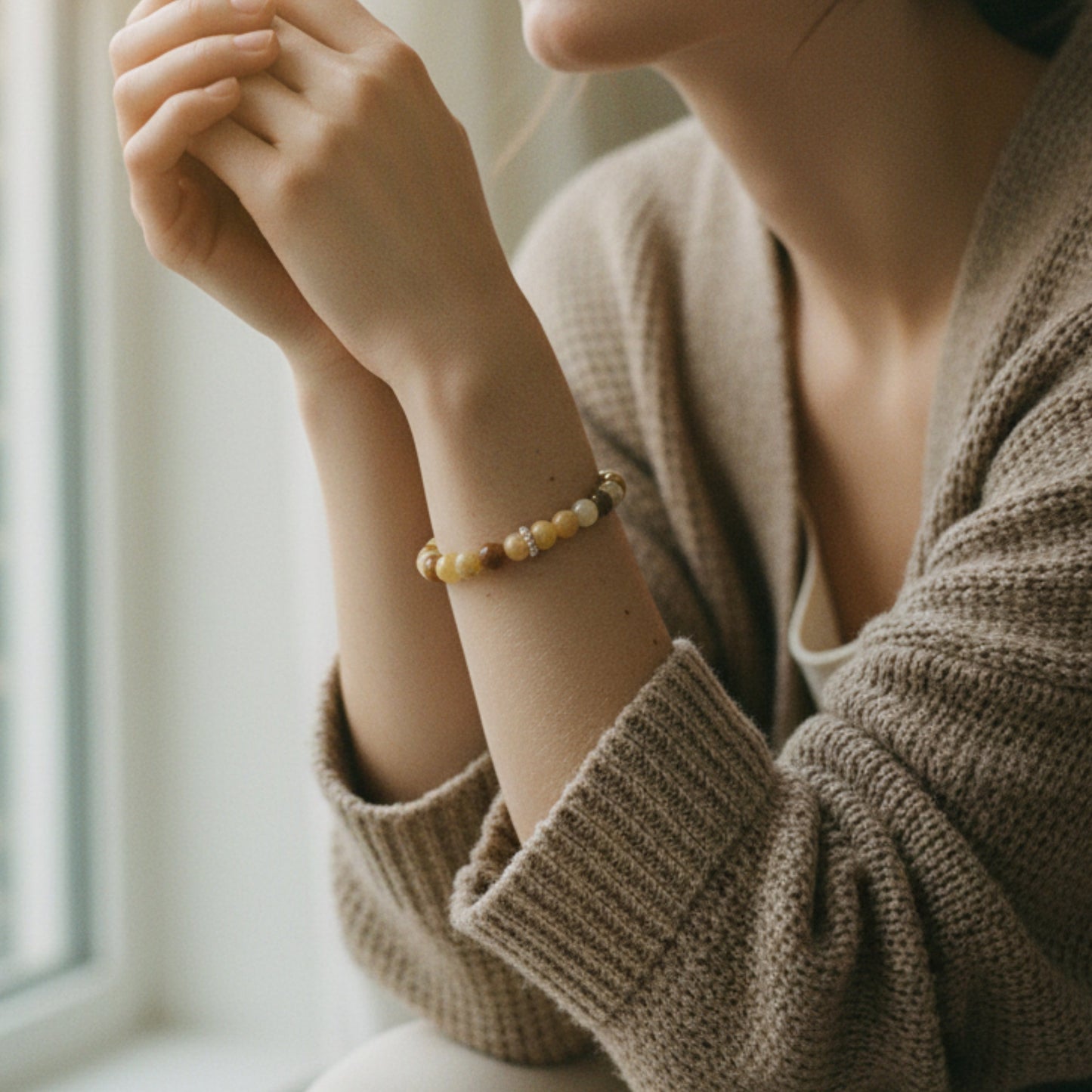 Gemstone Bracelet-6mm-Golden Jade